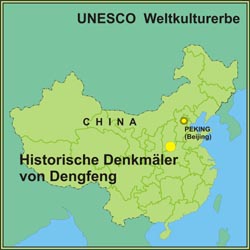 Die historischen Denkmäler von Dengfeng wurden über neun Dynastien von den Herrschern des alten Chinas als Verbindungsstelle zwischen Himmel und Erde errichtet. Sie wurden von der UNESCO zum Weltkulturerbe erklärt, da sie nicht nur die fortschrittliche Architektur und das Astronomiewissen der Erbauer zeigen, sondern auch die heilige Verbindung von Himmel und Erde.