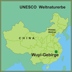 Das Wuyi-gebirge (chinesisch Wuyi shan) ist eine der bedeutendsten Gebirgslandschaften Chinas und liegt am äußersten, nordwestlichen Rand des Provinz Fujian, in der Nähe der Stadt Nanping. Es erstreckt sich über 500 Kilometer durch das gesamte Gebiet. Aufgrund der prachtvollen Landschaft und der besonderen Länge des Gebirges, gehört es zum Weltnaturerbe der UNESCO.