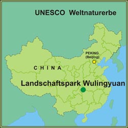 Wulingyuan ist ein Talgelände in der chinesischen Provinz Hunan, das zu der Stadt Zhangjiajie gehört. Die schwer zugängliche Karstlandschaft zeichnet sich vor allem durch seine etwa 3 100 Sandsteinhügel und -säulen aus.
